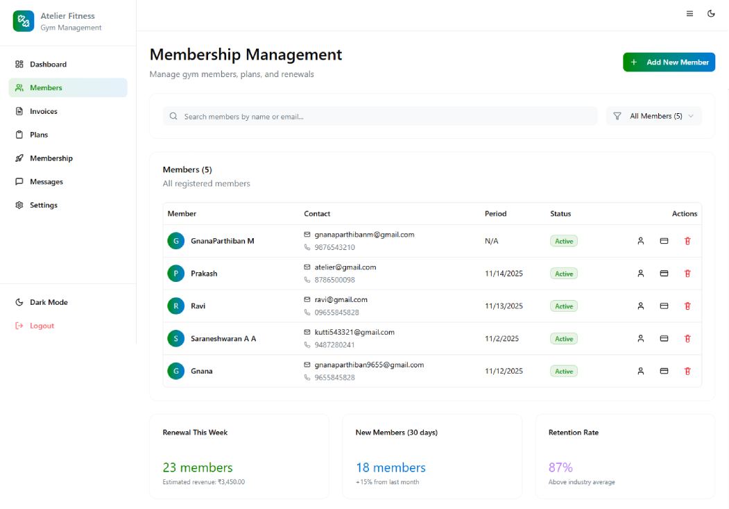 Atelier allows you to create custom subscriptions, plan classes, and bill members — all in one intuitive platform designed to support fitness centers.