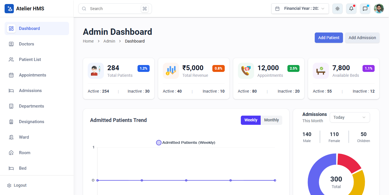 With OPD, IPD, daycare, lab, radiology, pharmacy, and tele-consulting; all under one roof, Atelier Hospital Management Software in India is a comprehensive solution provider for hospices and medical agencies.